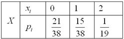 Из ящика с 19 стандартными и 1 нестандартной деталью, наудачу извлекается 2 детали. Составить закон распределения случайной величины – количества стандартных деталей в выборке.