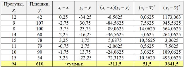 Имеются выборочные данные по студентам: – количество прогулов за некоторый период времени и – суммарная успеваемость за этот период: