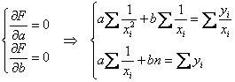 И сейчас мы возвращаемся к другому важному моменту: как отмечалось выше, подбираемая функция должна быть достаточно простА – но ведь и таких функций тоже немало: линейная, гиперболическая, экспоненциальная, логарифмическая, квадратичная и т. д. И, конечно же, тут сразу бы хотелось «сократить поле деятельности». Какой класс функций выбрать для исследования? Примитивный, но эффективный приём: – Проще всего изобразить точки Если же точки расположены, например, по гиперболе, то заведомо понятно, что линейная функция будет давать плохое приближение. В этом случае ищем наиболее «выгодные» коэффициенты А теперь обратите внимание, что в обоих случаях речь идёт о функции двух переменных, аргументами которой являются параметры разыскиваемых зависимостей: И по существу нам требуется решить стандартную задачу – найти минимум функции двух переменных. Вспомним про наш пример: предположим, что «магазинные» точки Если хотите использовать данную информацию для реферата или курсовика – буду очень благодарен за поставленную ссылку в списке источников, такие подробные выкладки найдёте мало где: Составим стандартную систему: Сокращаем каждое уравнение на «двойку» и, кроме того, «разваливаем» суммы: Примечание: самостоятельно проанализируйте, почему «а» и «бэ» можно вынести за значок суммы. Кстати, формально это можно проделать и с суммой Перепишем систему в «прикладном» виде: Координаты точек Функция Рассматриваемая задача имеет большое практическое значение. В ситуации с нашим примером, уравнение Я разберу всего лишь одну задачу с «реальными» числами, поскольку никаких трудностей в ней нет – все вычисления на уровне школьной программы 7-8 класса. В 95 процентов случаев вам будет предложено отыскать как раз линейную функцию, но в самом конце статьи я покажу, что ничуть не сложнее отыскать уравнения оптимальной гиперболы, экспоненты и некоторых других функций. По сути, осталось раздать обещанные плюшки – чтобы вы научились решать такие примеры не только безошибочно, но ещё и быстро. Внимательно изучаем стандарт: Задача В результате исследования взаимосвязи двух показателей, получены следующие пары чисел: Заметьте, что «иксовые» значения – натуральные, и это имеет характерный содержательный смысл, о котором я расскажу чуть позже; но они, разумеется, могут быть и дробными. Кроме того, в зависимости от содержания той или иной задачи как «иксовые», так и «игрековые» значения полностью или частично могут быть отрицательными. Ну а у нас дана «безликая» задача, и мы начинаем её решение: Коэффициенты В целях более компактной записи переменную-«счётчик» можно опустить, поскольку и так понятно, что суммирование осуществляется от 1 до Расчёт нужных сумм удобнее оформить в табличном виде: