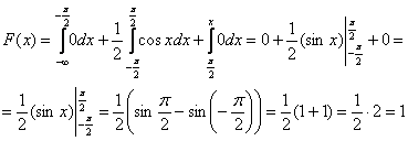 Осталось изобразить функцию распределения. График представляет собой сжатуюв 2 раза вдоль оси ординат синусоиду, сдвинутую на вверх: