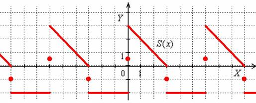 Готово. Напоминаю, что сама функция по условию определена только на полуинтервале и, очевидно, совпадает с суммой ряда на интервалах
