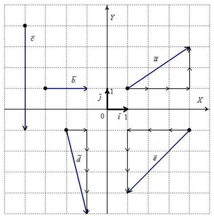 Векторы , иллюстрируют в точности правило умножения вектора на число, вектор сонаправлен с базисным вектором , вектор направлен противоположно по отношению к базисному вектору . У данных векторов одна из координат равна нулю, дотошно можно записать так: