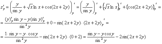 Теперь . Когда мы находим частную производную по «игрек», то переменная считается константой.