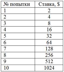 Аналогично для любого следующего шага. Так, если дело дошло до 10-й попытки, и мы ставим 1024$, то пытаемся выиграть те же самые два бакса! И ещё – всего лишь отыграть!! Всё, что «слили» ранее.