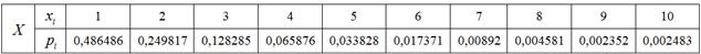 Как вы поняли, под сеансом игры подразумевается серия, состоящая от 1 до 10 попыток, при этом мы либо выигрываем на каком-то шаге, либо теряем всё на 10-м. Кстати, тут нетрудно подсчитать все вероятности, случайная величина – количество попыток в сеансе имеет геометрическое распределение с конечным числом испытаний. И похожие задачки уже были: