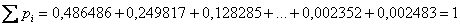 – вероятность выигрыша в 9-й попытке, и в 10-й попытке мы либо выигрываем, либо проигрываем, по теореме сложения несовместных событий: